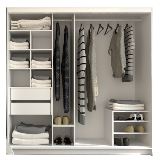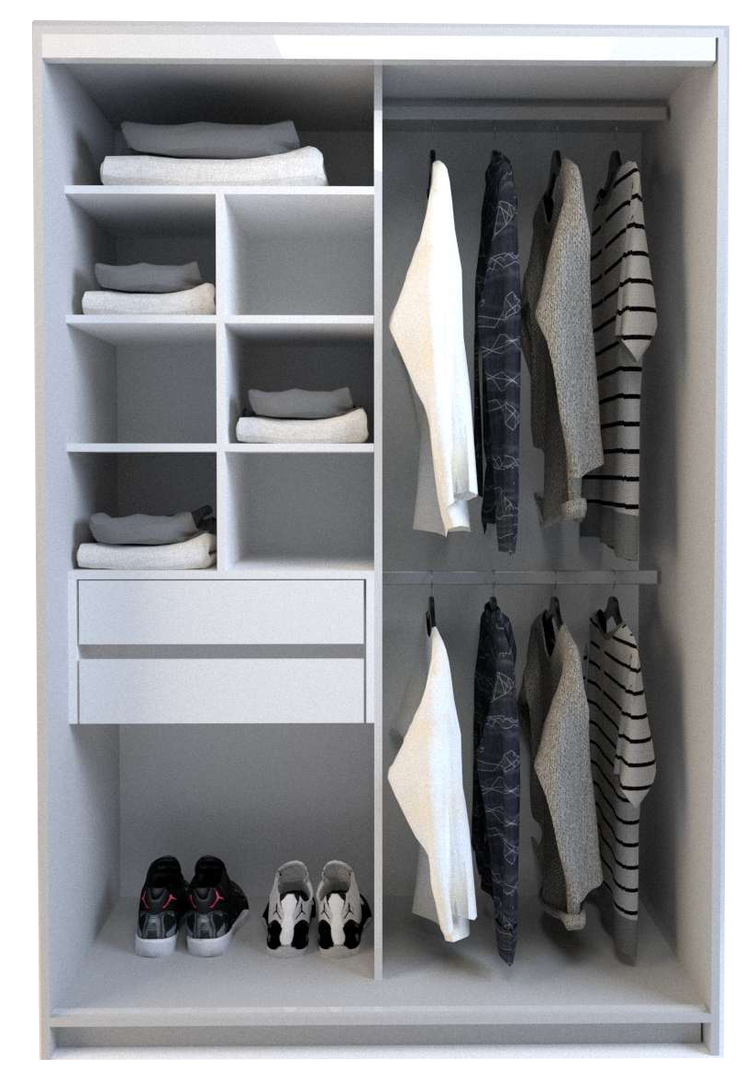 SE ENTREGA EN SU CAJA LISTO PARA ENSAMBLAR. GUIAS DE ALUMINIO EN PUERTAS, CORREDERAS EN LOS CAJONES, INTERIOR REVESTIDO EN MELAMINAY DIVICIONES VERTICALES PARA MAYOR RESISTENCIA. MEDIDAS. ANCHO 150cm / ALTO 180cm / PROFUNDIDAD 54 cm