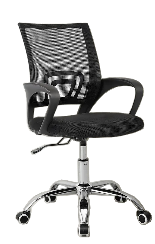 ESTRELLA DE METAL CROMADO REFORZADO CON RUEDAS ASIENTO Y RESPALDO EN TELA MESH ANTI TRANSPIRANTE, IDEAL PARA ESCRITORIO Y CONSULTORIOS.