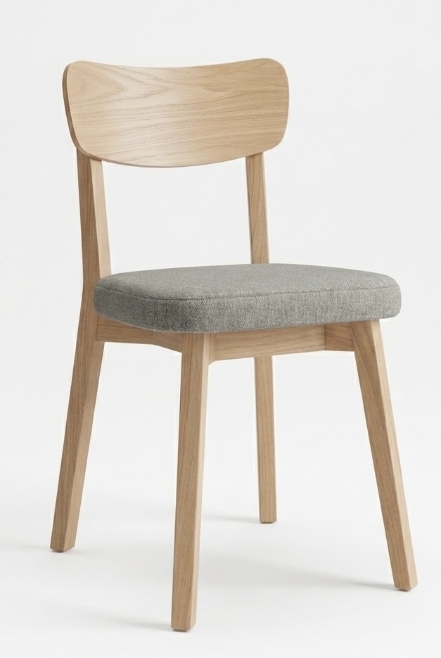 SILLA CONTRUIDA EN MADERA CREAR CON RESPALDO EN MADERA ASIENTO TAPIZADO EN TELA LINO O ECO CUERO.